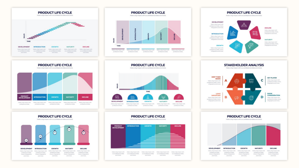 A well-structured PLC analysis provides detailed insights into each stage of your product's life cycle. From the initial introduction to eventual decline, our templates help you visualize the product’s journey and identify opportunities for growth or revitalization. We offer various formats, including line graphs, charts, and infographics, to suit different presentation styles.