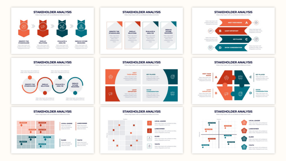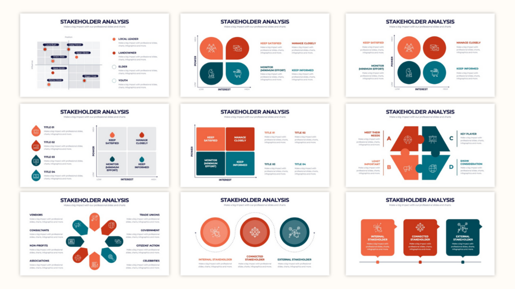 Customizable Designs: Easily adapt templates to reflect your project’s specific stakeholder landscape.